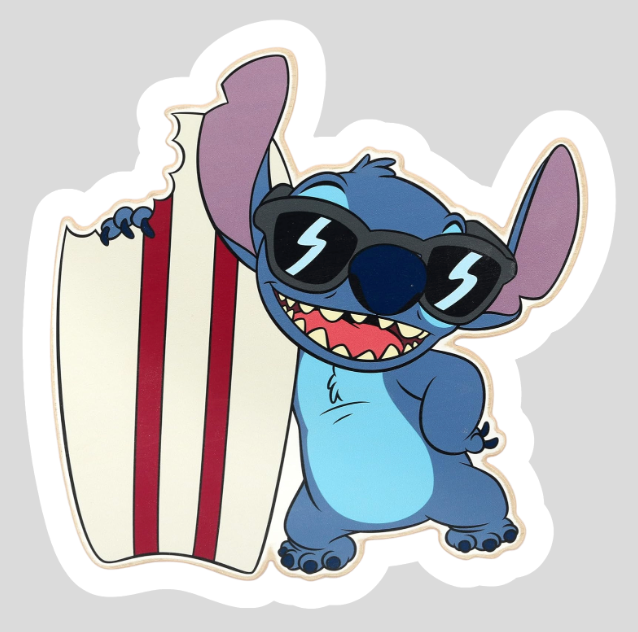 Stitch Holding Surfboard - Waterproof Vinyl Sticker